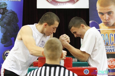 - XIV Mistrzostwa Polski w Armwrestlingu - Skierniewice Dawid Capała w finale do 70 kg lewa ręka 2014-04-08 22:54:18