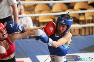 Walka finałowa w kat. 51 kg seniorek: Małgorzata Choma (Mechanik Włodawa) vs Alina Szyszko (Boks Lublin)